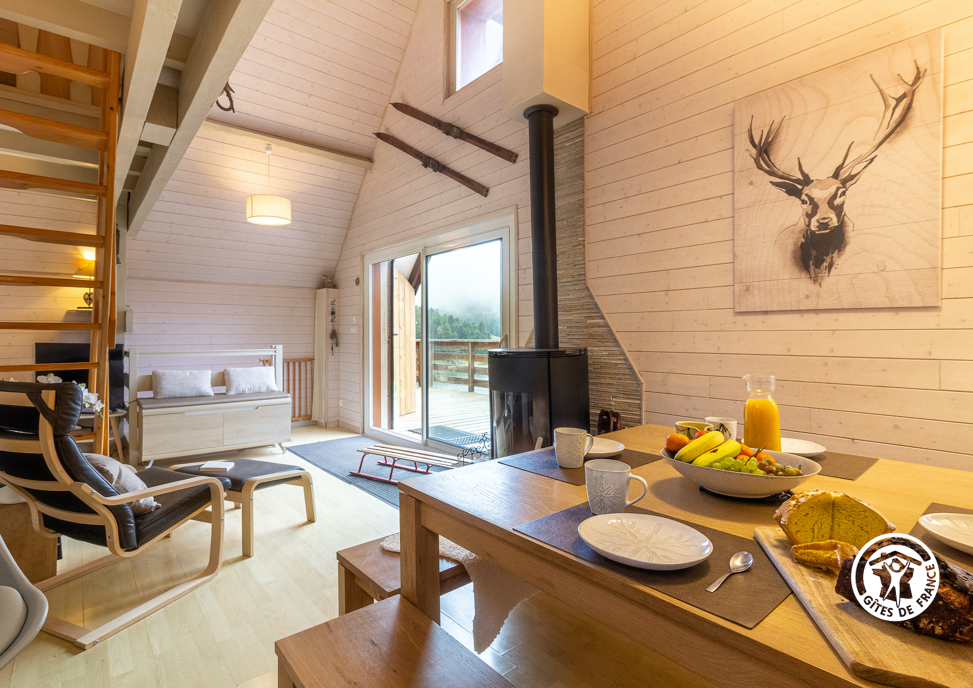 Doté du dernier confort (Meublé de Tourisme 4 étoiles) et d’une décoration raffinée, le chalet offre une vue imprenable sur le lac de Payolle.